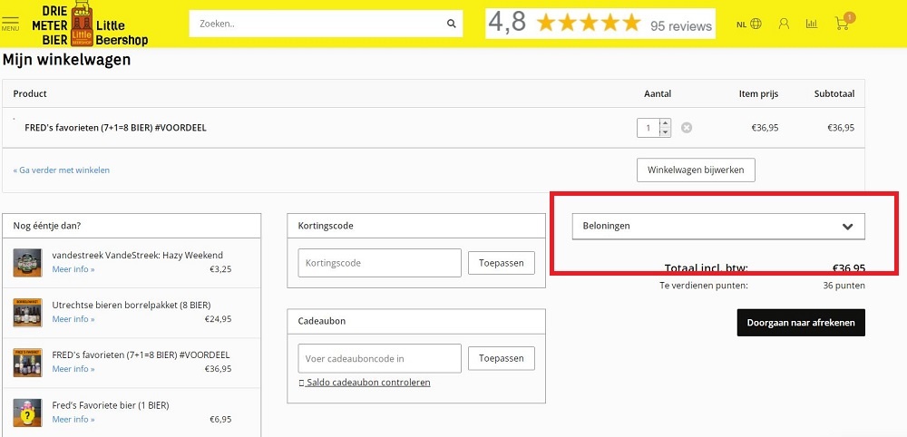 Je verjaardagskorting pas je toe door in je winkelmandje in het dropdown menu de korting te selecteren.